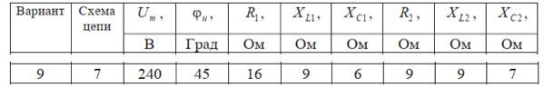 Um и начальная фаза φu напряжения, а также значения активных, индуктивных и емкостных сопротивлений приведены в таблицах 2.2 и 2.3 и выбираются по вариантам. Частота ω = 314 рад/с.