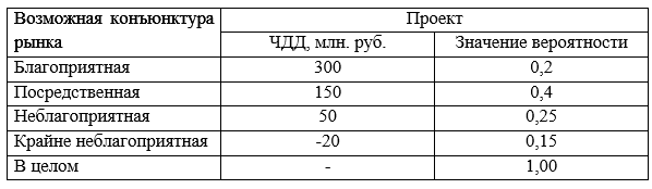 На основе исходных данных, представленных в таблице, оценить риск проекта с помощью коэффициента вариации чистого дисконтированного дохода.