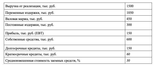 Определите уровень эффекта финансового левериджа по нижеприведенным исходным данным и ставки налогообложения прибыли -20%: •