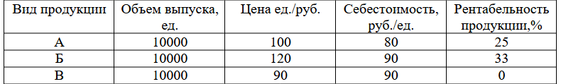 «В цехе выпускается три вида продукции. Характеристики производства представлены в таблице 6.5. Постоянные расходы по цеху составляет 1200 тыс. руб. Постоянные расходы распределяются пропорционально выпуску. Решено прекратить выпуск»