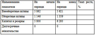 Используя горизонтальный анализ, оценить динамику изменения разделов баланса по следующим данным. Темп роста = На конец периода / На начало периода * 100
