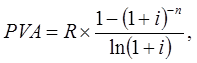 Современную величину непрерывной ренты (PVA) определим из формулы: