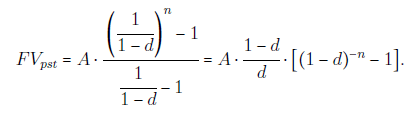 «Оценить стоимость трехгодичной ренты с ежемесячной выплатой 300 долл., если также ежемесячно начисляются антисипативные проценты по сложной учетной ставке 6% годовых.»