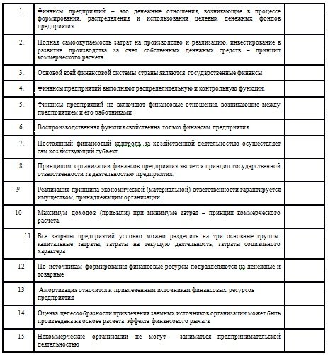 «Определите, верно или неверно то или иное положение: Финансы предприятий – это денежные отношения, возникающие в процессе формирования, распределения и использования целевых денежных фондов предприятия.»