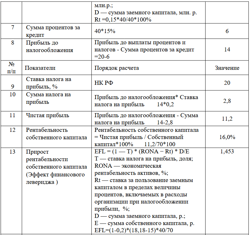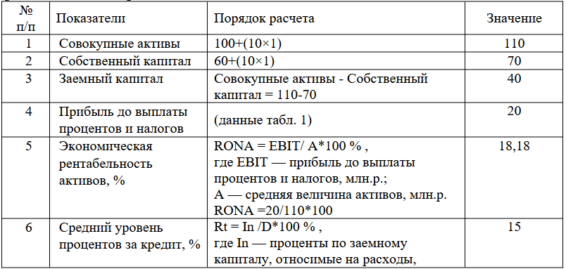 По данным таблицы 2 рассчитать силу воздействия финансового левериджа и эффект финансового левериджа. Сделать выводы об уровне финансового риска предприятия и целесообразности привлечения заемного капитала на данных условиях.