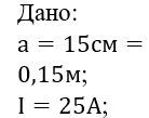По прямому проводу, согнутому в виде правильного шестиугольника с длиной стороны 15 см, течёт ток 25 А. Определить напряжённость поля в центре шестиугольника. Для сравнения вычислить напряжённость поля при той же силе тока в центре кругового провода, совпадающего с окружностью, описанной около данного шестиугольника.