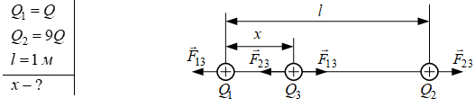 Определить, в какой точке на прямой, проходящей через эти заряды, следует поместить третий заряд так, чтобы он находился в равновесии. Указать, какой знак должен иметь заряд для того, чтобы равновесие было устойчивым, если перемещение заряда Q3 возможно только вдоль прямой, проходящей через закрепленные заряды.