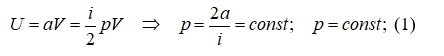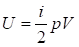Внутренняя идеального газа может быть выражена через давление р, объём V и число степеней свободы молекулы i формулой:
