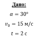 «Камень бросили с крутого берега вверх под углом 30 градусов к горизонту со скоростью 15 м/с. С какой скоростью он упал в воду, если время полета 2 с.»