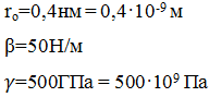 =500ГПа, среднее межатомное расстояние rо=0,4нм.