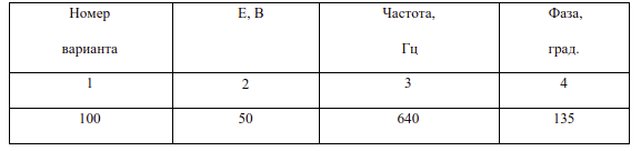 2. Заменив постоянную ЭДС в схеме гармонической, частота, амплитуда и начальная фаза которой для каждого варианта даны в таблице 2, решить задачу любым методом.