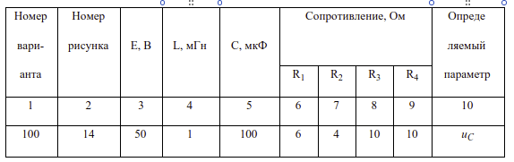 1. Определить зависимость тока от времени после коммутации в одной из ветвей цепи или напряжения на каком-либо элементе или между заданными точками схемы. Задачу следует решить двумя методами: классическим и операторным, если действует постоянная ЭДС.