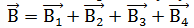 Согласно принципу суперпозиции магнитных полей магнитная индукция в точке О равна