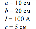 «Прямоугольная проволочная рамка со сторонами a = 10 см и b = 20 см расположена в одной плоскости с длинным прямым проводом так, что две ее короткие стороны параллельны проводу. По рамке и проводу текут одинаковые токи I = 100 А.»