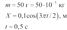 Пружинный маятник с массой шарика 50 г совершает гармонические колебания согласно уравнению