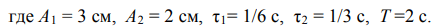 «Складываются два колебания одинакового направления где А1 = 3 см, А2 = 2 см, τ1= 1/6 c, τ2 = 1/3 с, Т =2 с. Построить векторную диаграмму сложения этих колебаний и написать уравнение результирующего колебания»
