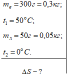 «В 300г воды при 50°С опустили 50г льда при 0°С. Вычислить изменение энтропии в момент установления теплового равновесия.»