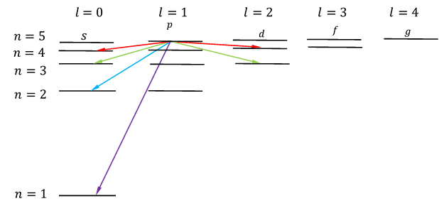 В атоме водорода электрон находится в возбужденном состоянии 5р.