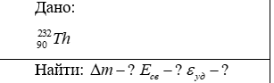 Вычислить дефект массы, энергию связи ядра и удельную энергию связи ядра .