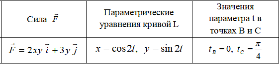 при перемещении точки приложения силы вдоль заданной кривой L от точки B до точки C, если значения параметра t в точках B и C заданы.