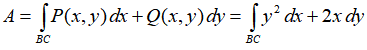 Составленный криволинейный интеграл сводим к определенному интегралу, используя параметрические уравнения кривой ВС: