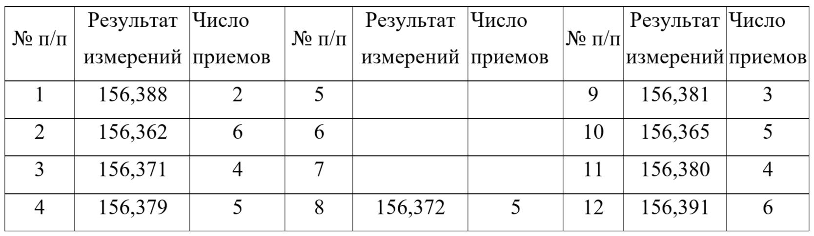 Даны результаты многократных независимых неравноточных измерений одного и того же расстояния (измерения выполнены одним и тем же прибором, в примерно одинаковых условиях, но разным числом приёмов). Выполнить математическую обработку данного ряда: