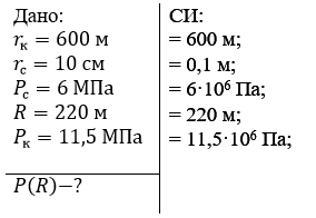 «Определить давление на заданном расстоянии от оси скважины, если известно, что на контуре питания и в скважине (известны радиусы) поддерживаются постоянные давления.»