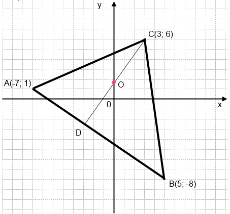 Даны вершины треугольника АВС. А (–7; 1), В (5; -8), С (3; 6).