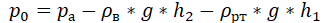 2. Для схемы, представленной на рис. 2, дано: h1 = 0,5 м, h2 = 0,2 м. Определить (ра)с и р0.