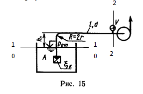 Составим уравнение Бернулли для сечений 1-1 и 2-2 относительно плоскости сравнения 0-0 совпадающей с сечением 1-1.