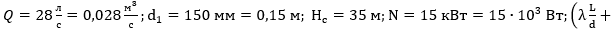 «Центробежный насос с подачей подает воду по трубопроводу диаметром на высоту .Определить полный КПД насоса, если мощность, потребляемая насосом,»