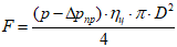 Усилие, развиваемое цилиндром, с учётом его КПД (диаметром штока пренебрегаем):