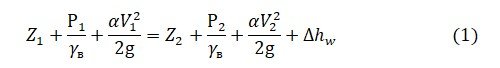 Z1 и Z2 высота подъема сечений 1 и 2 над плоскостью сравнения, м;