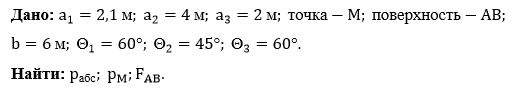 1. Определяем абсолютное и избыточное давление в заданной точке M.