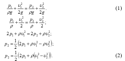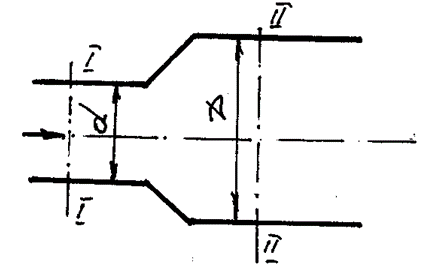 Запишем уравнение Бернулли для сечения I-I и II-II этого потока, пренебрегая местными потерями на расширение: