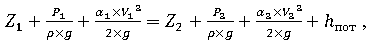 Запишем уравнение Бернулли для сечений 1-1 и 2-2 относительно плоскости 0-0: