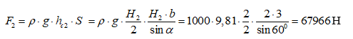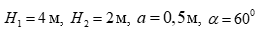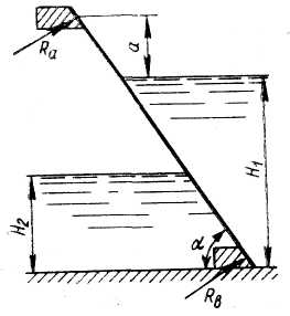 Определить реакции верхнего и нижнего опорных брусьев, на которые опирается щит, перекрывающий прямоугольное отверстие плотины шириной b = 3 м при следующих исходных данных: