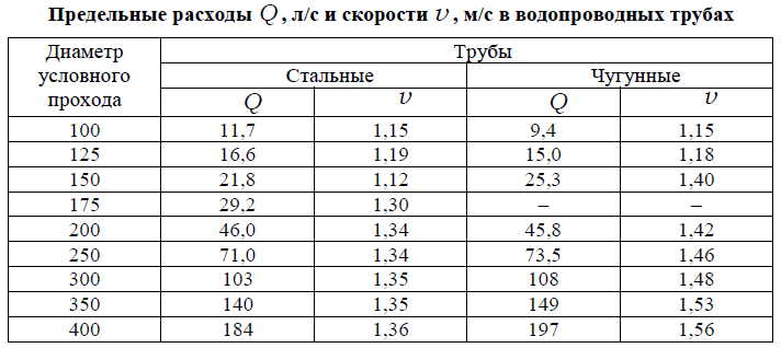выбираем по предельному расходу диаметр условного прохода трубопровода D=300мм.
