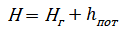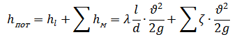 где hпот потери напора по длине трубопровода и сумма местных потерь напора: