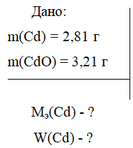 m(O) = m(CdO) m(Cd) = 3,21 2,81 = 0,40 г.