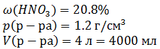 1. Вычислите нормальность и моляльность 20,8%-ного раствора HNO3 плотностью 1,12 г/см3. Сколько граммов кислоты содержится в 4 л этого раствора?
