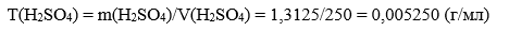 250 мл раствора содержит 1,3125 г вещества H2SO4.