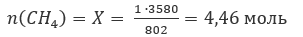 Объем метана, который необходимо сжечь для получения 3580 кДж энергии: