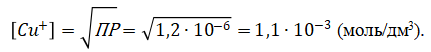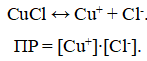 Произведение растворимости ПР(CuCl) = 1,2∙10-6.