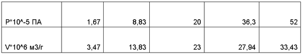 Количество (V) N2 (273 K и 1,01*100000 Па) адсорбированное 1 г угля при 194,5 К и различном давлении (таблица 1.1):