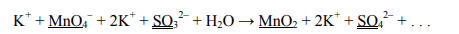 В нейтральной среде восполнение недостающего кислорода в левой части уравнения происходит из молекул воды с образованием ионов водорода H+ в правой части уравнения, а избыток кислорода связывают также молекулами воды с образованием в правой части урав...