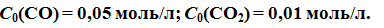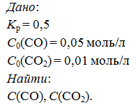 Константа равновесия системыпри некоторой температуре равна 0,5. Найдите равновесные молярные концентрации CO и CO2, если их начальные молярные концентрации были равны