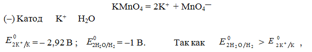 Опишите процессы, происходящие при электролизе водного раствора перманганата калия