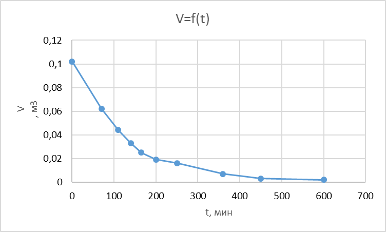 Среднее значение константы скорости реакции может быть найдено графически. Если построить график зависимости lgV = f(t), то для реакции первого порядка зависимость должна быть линейной. Изобразим графически зависимость lgV от времени, откладыв...