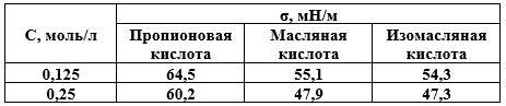«Определите и сравните поверхностную активность пропионовой, масляной и изомасляной кислот в водных растворах (Т = 298 К). Сделайте выводы из полученных данных.»